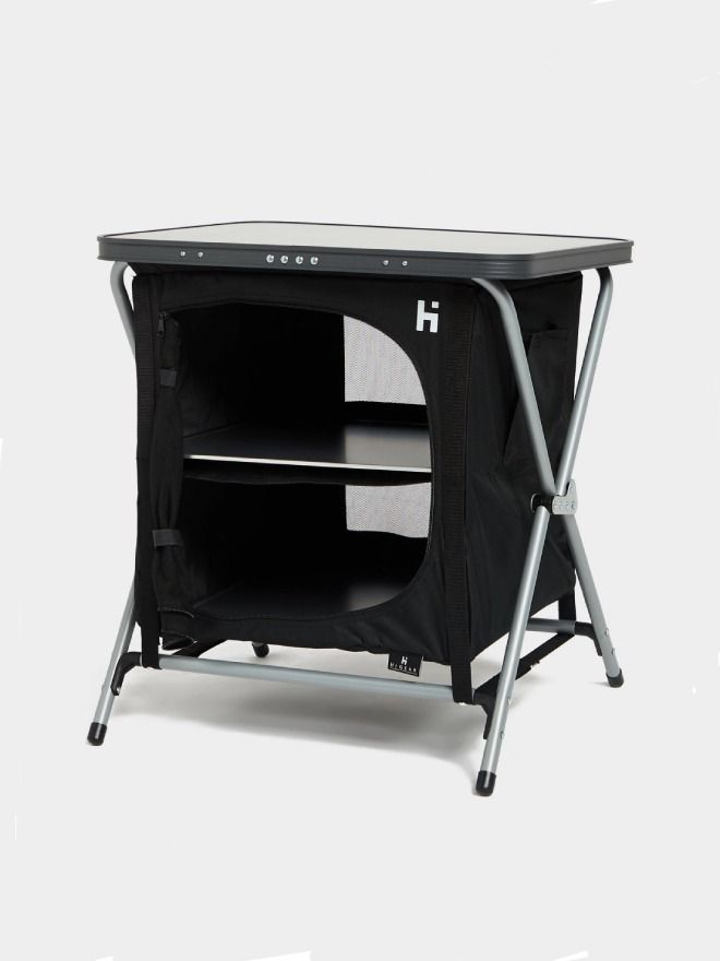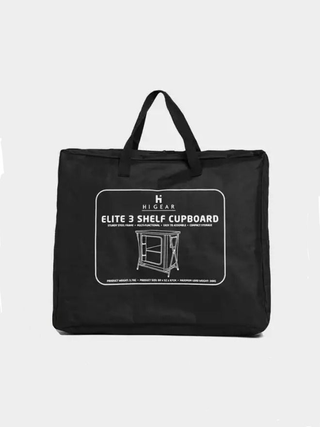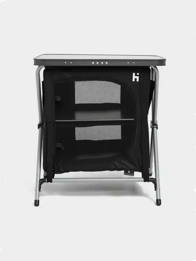 A handy storage option and side table for camping. With two interior shelves, it's an ideal space saver and tidy-up tool.