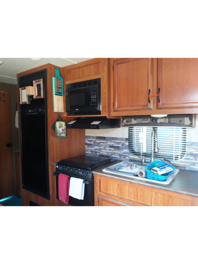 Lots of room inside with 5 slides, residential refrigerator with ice maker, separate ac in the master bedroom, master bedroom has a tv, Large bunk house, bath and a 1/2, outside kitchen with a refrigerator, Fresh and clean and ready to go on your next adventure. (2-bed rooms ) The living room has a sofa bed coffee marker fully stocked with pots and pans, linens. 4 beds in the bunkhouse can accommodate adults. Great for corporate outing very big and comfortable.